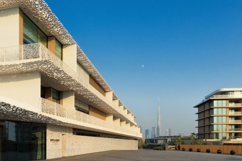 Всемирно известная итальянская архитектурная фирма Antonio Citterio Patricia Viel, трудившаяся над всеми отелями коллекции Bulgari Hotels & Resorts, разработала дизайн Bulgari Resort Dubai в чисто итальянском стиле. Создавая здание как изысканное украшение, архитекторы подобрали редкие материалы, отличающиеся цветом, текстурой и фактурой, и заставили их сверкать, источать красоту и оставаться прекрасными в любых условиях — создав непревзойденный образец роскошного гостеприимства.
