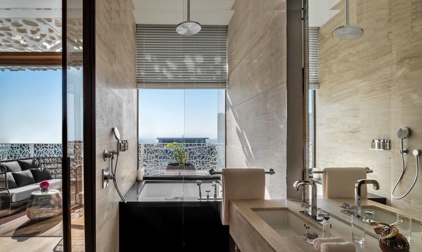 В каждом сьюте Bulgari площадью более 120 кв. метров имеется просторная гостиная, роскошная ванная, отделанная мрамором, отдельная дамская туалетная комната и небольшой уютный рабочий кабинет для тех, кому это необходимо. С крытой террасы открывается превосходная морская панорама, кроме того, на ней есть широкая ванна-джакузи, в которой можно расслабиться, наслаждаясь океанскими видами.