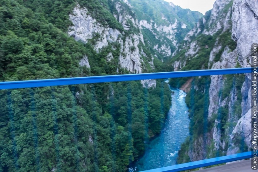 Отсюда дорога начинает идти по ущелью вдоль реки с зачетным для русского названием Pivа. С этого момента вся наша команда начала дружно оргазмировать, т.к. не ожидала такой красоты.