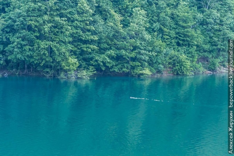 Когда мы проехали по дамбе, выяснилось, что это озеро искусственное.