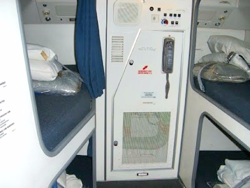 Да, на 14-часовом рейсе в Пекин у нас есть четыре часа на отдых. Мы разносим напитки, еду, десерты, все забираем, а затем идем на отдых. Сначала одна половина экипажа, затем другая. Кровати находятся на очень маленькой винтовой лестнице в хвосте самолета, они очень маленькие и похожи на гроб, здесь даже нельзя сидеть. Небольшое отверстие, которое прикрыто занавесом. Тут можно поспать, послушать музыку или просто расслабиться. Но здесь есть определенные правила. Так, здесь нельзя болтать, а также оставлять свое постельное белье. Вы забираете свои вещи и достаете чистую постель, чтобы следующий бортпроводник ничего не искал.