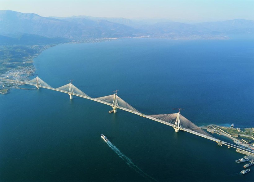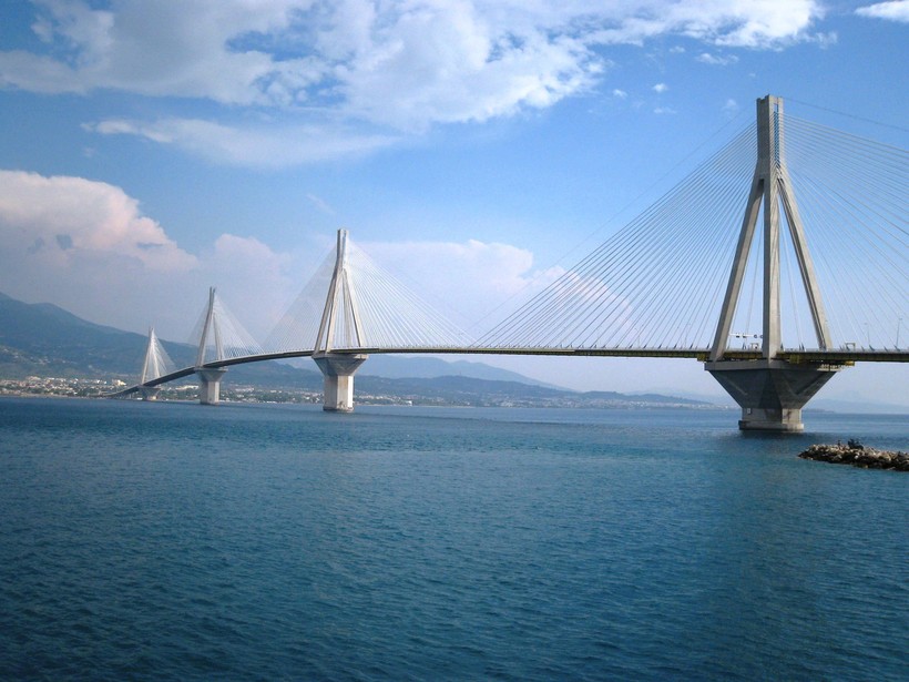 Природные условия Коринфского залива никак не способствуют строительству такого сложного инженерного сооружения, как протяженный автомобильный мост. Риск 8-балльного землетрясения, глубина 60 метров, вязкий, неустойчивый грунт, сильный ветер и постоянные движения земной коры, из-за которых берега удаляются друг от друга на несколько сантиметров в год — все это пришлось преодолеть инженерам и строителям уникального моста Рио-Антирио в Греции.