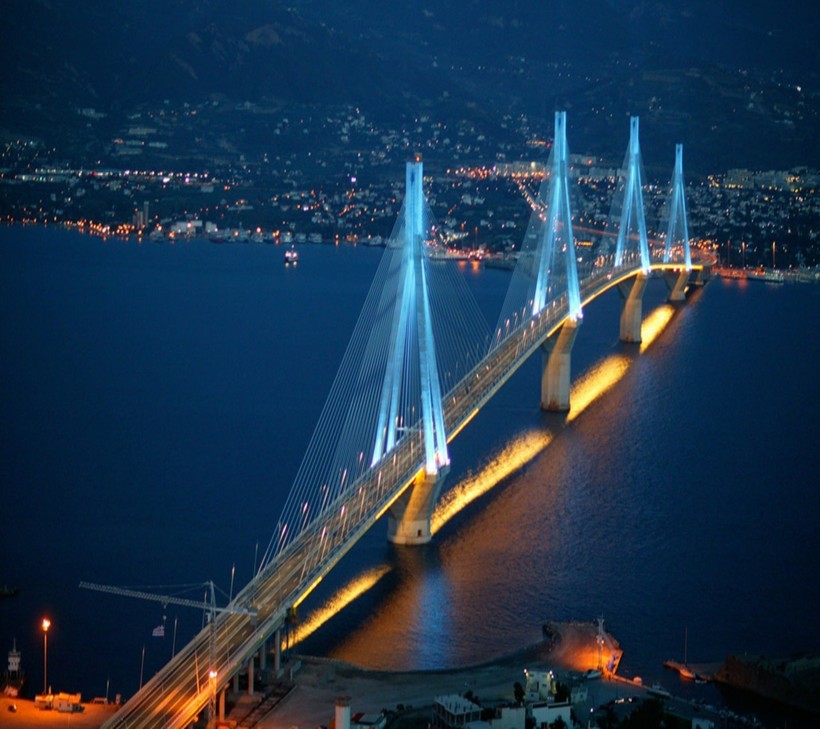 Этот невероятно сложный с технической точки зрения мост был построен всего за 5 лет. Его проектирование и строительство осуществляла французская компания Vinci при активном участии греческих инженеров, а движение по мосту Рио-Антирио было открыто летом 2004 года.