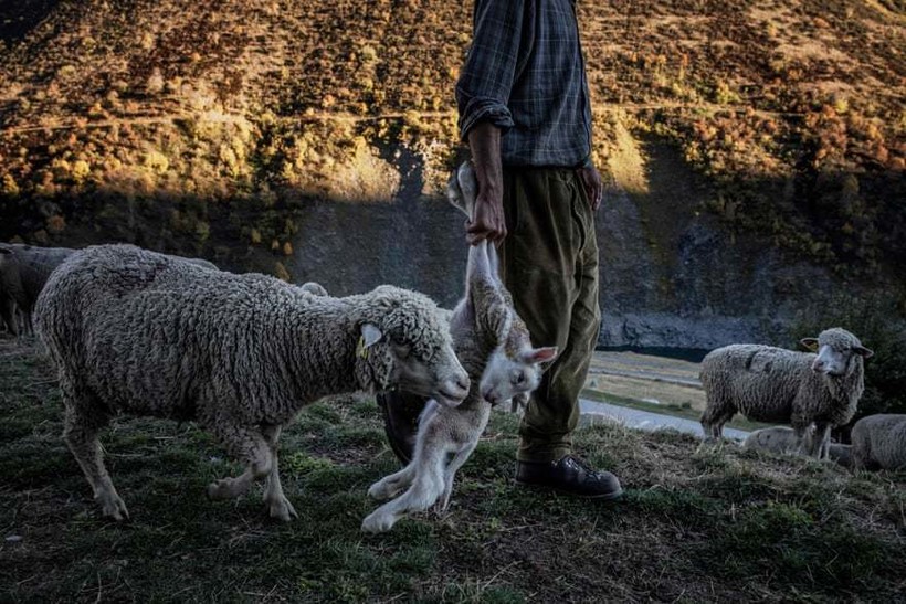 Стадо овец следует «соляным маршрутом» — это путь, который Гаетан предварительно посыпал солью, чтобы направить животных к следующему пастбищу.