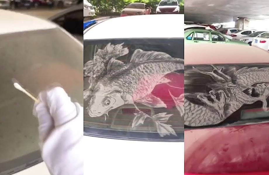 Наверняка в детстве каждый любил рисовать на покрытых уличной пылью автомобилях, но у героя нашего видео эта привычки со временем не исчезла, а перешла на новый уровень. Используя собственный палец, ватную палочку и зубную щетку, он создает настоящие шедевры, которыми действительно хочется любоваться. Вот только срок их жизни, к большому сожалению, до следующего дождя или визита в автомойку.