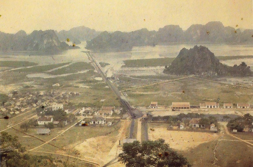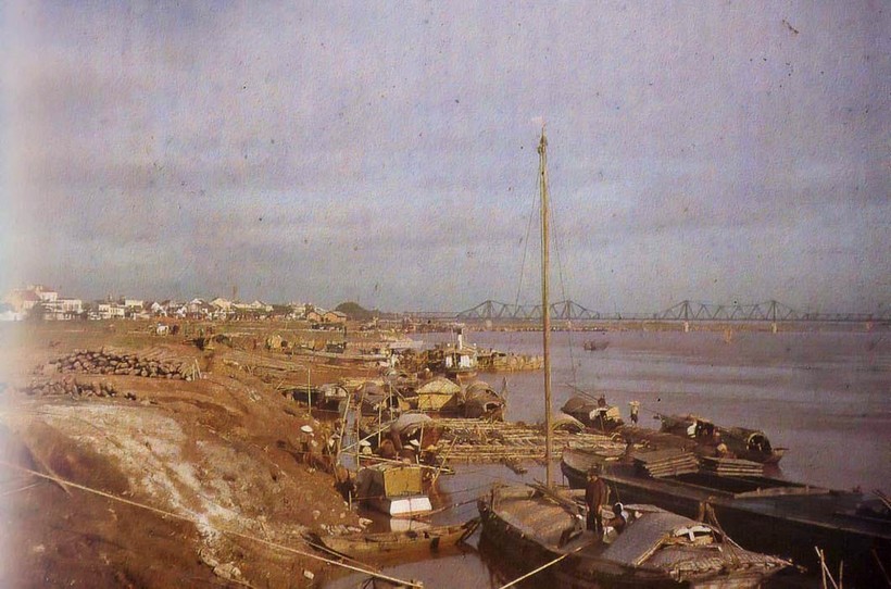 Сампаны в Ханое. А на горизонте виднеется мост Поля Думера, 1915 год