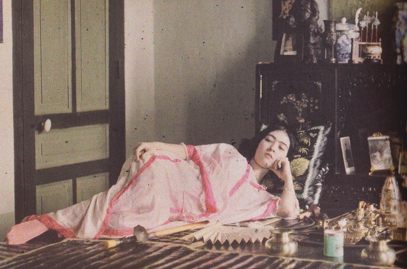 Слева ханойская жительница, 1914 год. Справа фотография жрицы культа Трех миров 1915 года