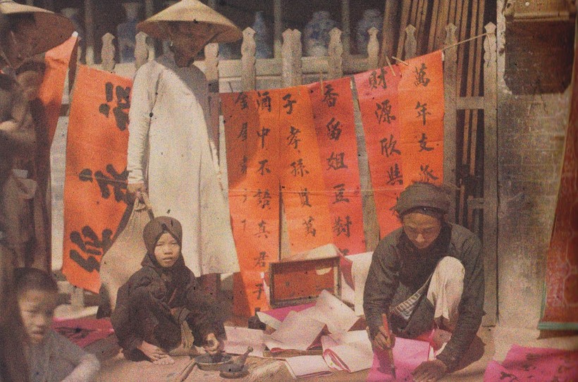 Слева актеры сайгонского театра в 1915 году. Справа губернатор провинции Ха Донг — Хоанг Чонг Пу, 1914 год