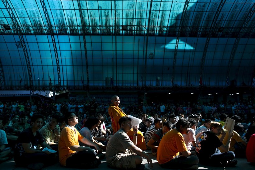 Так, на призыве этого года в школе Бангкока трансгендер и буддийский монах ждут, чтобы поговорить с офицерами.