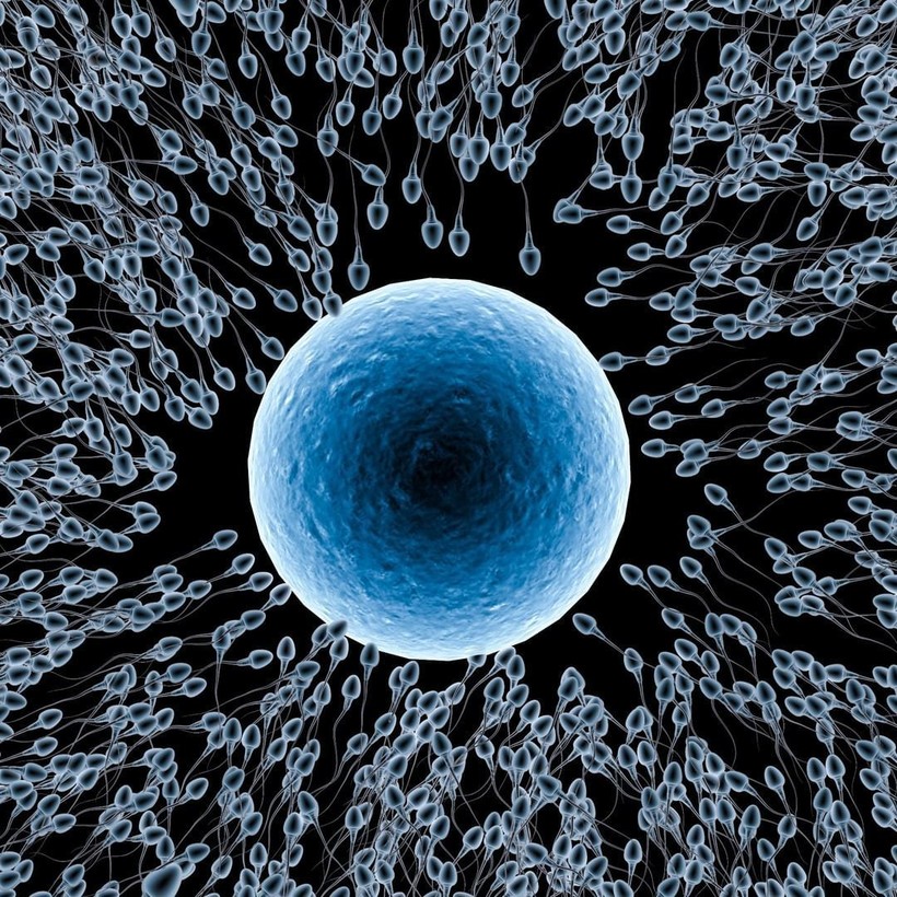 Яйцеклетка в окружении сперматозоидов, готовящихся к оплодотворению.