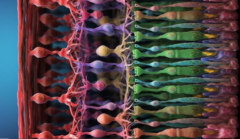 Палочки и колбочки в глазу, увеличенные во много раз.