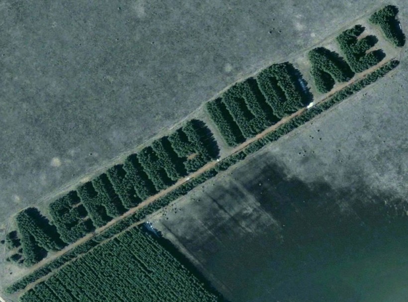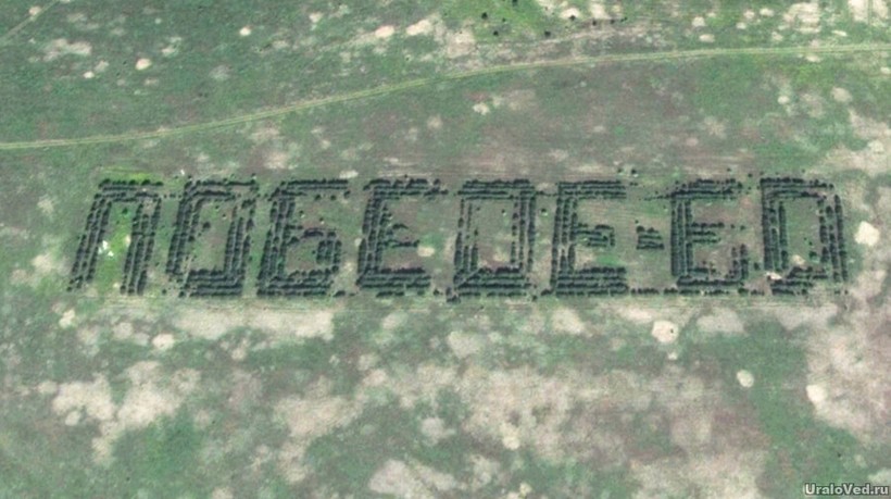 Кстати, именно в России существуют необычные лесные полосы в виде надписей, которые были высажены в разное время по случаю памятных дат. Сразу в нескольких регионах нашей страны растут необычные достопримечательности, которые, впрочем, можно увидеть только с воздуха.