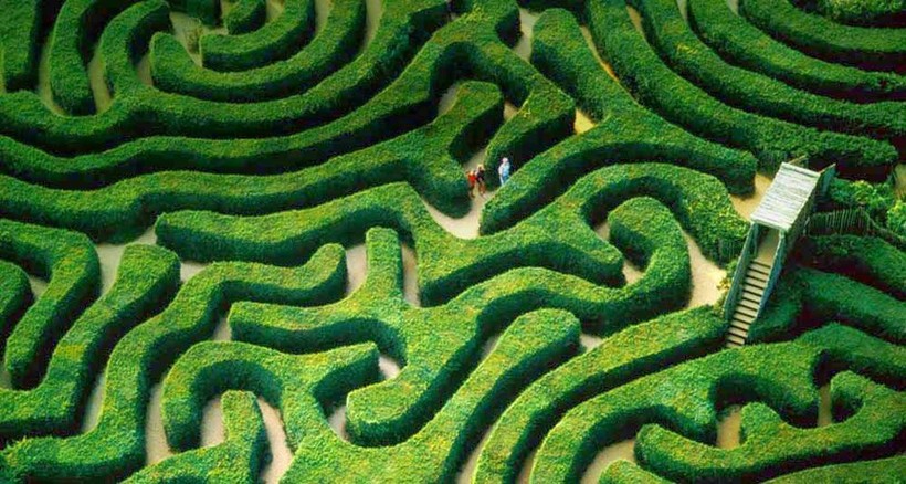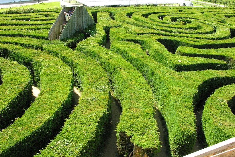 Лабиринт раскинулся на площади в 1,5 гектара. Его витиеватые ходы и огромное множество тропинок позволяют не просто неспешно прогуляться, но и как следует напрячь мозг, ведь выйти из него очень непросто. Впрочем, в качестве подсказок можно использовать специальные смотровые мостики.