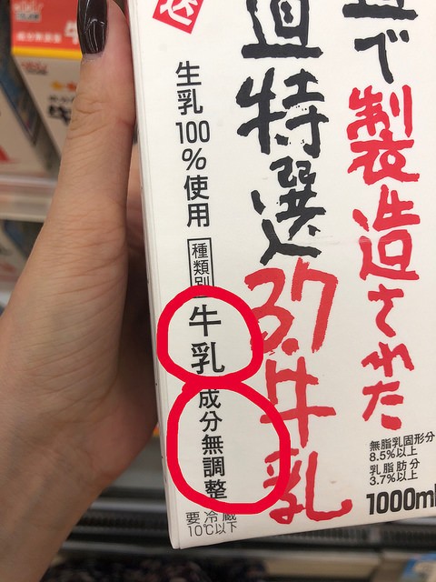 На цельном написано вот так: в верхнем кружке «молоко», в нижнем «цельное, состав без изменений».