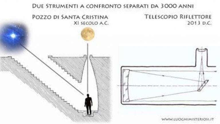 Первое, что бросается в глаза при посещении колодца Санта-Кристина — это идеально ровные стены и аккуратная кладка, не очень похожая на большинство строений нурагического периода. Кроме того, спуск в колодец имеет довольно широкий вход, чего нельзя сказать об остальных подобных сооружениях. Оказывается, колодец позволяет наблюдать за небесными телами, а в дни весеннего и осеннего равноденствия Солнце отражается от поверхности источника и озаряет внутреннее пространство колодца. Также выяснилось, что 1 раз в 18 лет и 6 месяцев свет Луны, находящейся на максимальной высоте, проникает в отверстие в крыше колодца.