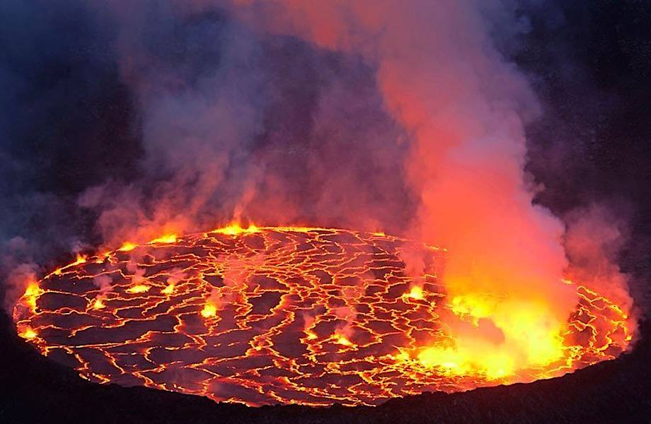 Вулкан Ньирагонго расположен в 17 километрах к северу от озера Киву и возвышает над африканскими тропиками на 3 470 метров. За прошедшие 135 лет было зафиксировано 34 извержения, а в последний раз этот грозный, дымящий исполин извергался в 2012 году и с тех пор регулярно проявляет признаки активности. Интересной особенностью вулкана является наличие жидкой лавы в кратере.