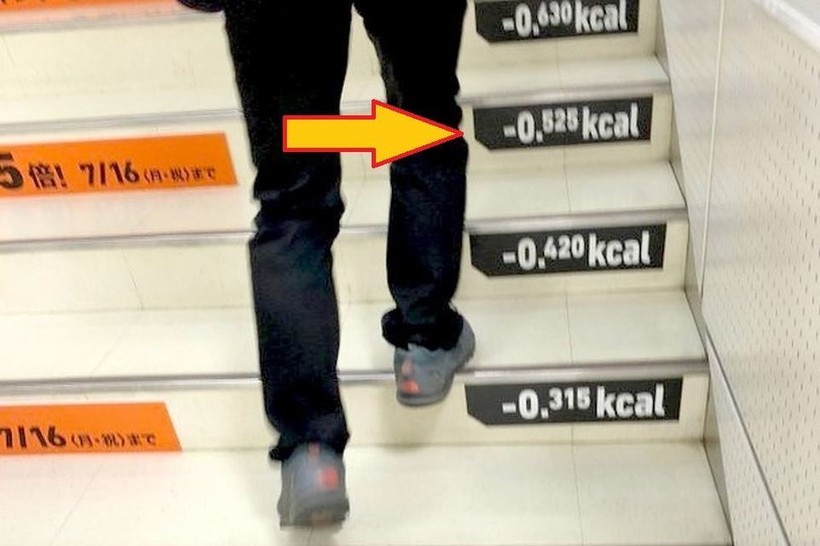 В одном из магазинов в Токио на ступенях показано, сколько калорий вы сжигаете, поднимаясь по ним.