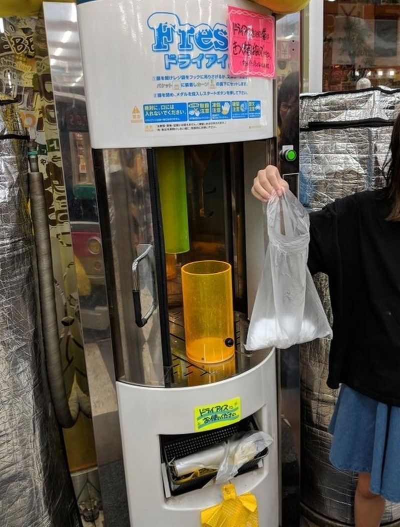 Супермаркеты оборудованы автоматами для сухого льда, чтобы ваши покупки могли дольше оставаться холодными.
