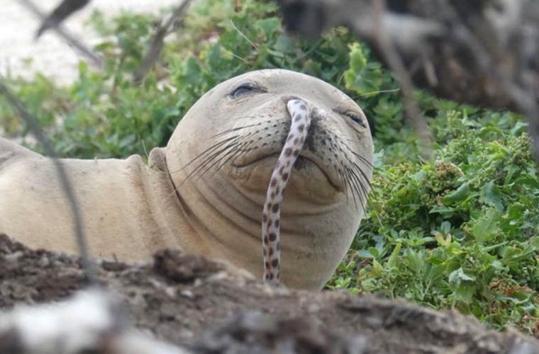 На днях ученые обнаружили молодого гавайского тюленя-монаха, у которого из носа торчал угорь. Это узкая и длинная рыба каким-то образом оказалась в носу у ластоногого, и, как отмечают специалисты из Национального управления океанических и атмосферных исследований (NOAA), подобных животных им уже приходилось находить ранее.