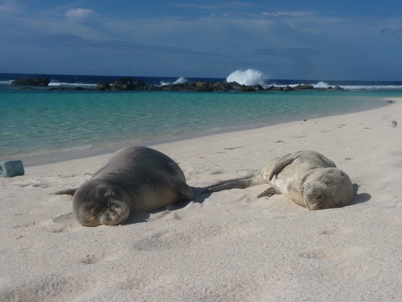 Гавайские тюлени-монахи обитают в районе Гавайского архипелага и крайне малочисленны. Свое научное название они получили за необычные складки кожи на шее, которые напоминают капюшон монаха. Но местные жители называют этих животных совсем иначе. Гавайские тюлени-монахи кормятся в коралловых рифах, разыскивая пищу на мелководье, поэтому местные аборигены называют их «собака, бегающая в бурной воде». Обычно тюлени обитают в прохладных водах умеренных и полярных широт, но гавайский тюлень-монах один из немногих видов тюленей, которые чувствуют себя комфортно в тропиках. Они частенько выходят на песочные пляжи, чтобы понежиться на солнышке.
