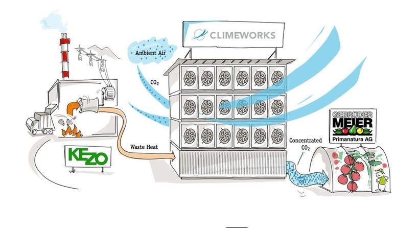Летом 2017 года в Швейцарии открылся первый завод по утилизации углекислого газа из воздуха. Завод был построен компанией Climeworks недалеко от Цюриха. На предприятии установлено оборудование, работа которого основана на технологии DAC. Технология DAC (Direct air capture) — «прямого захвата и очистки воздуха» основана на извлечении углекислого газа из атмосферного воздуха, путем засасывания его с помощью огромного пылесоса. Фильтрующий материал имеет в своем составе амины — специальные химические вещества, которые задерживают углекислый газ. Проектная мощность этого завода составляет 900 тонн углекислого газа в год. Если сравнить с реальными объектами, производящими этот парниковый газ, то получается, что работа завода будет нивелировать выбросы углекислого газа от 200 работающих автомобилей. Конечно, это ничтожно мало даже в масштабах крупного города, не говоря уже о стране или мире, поэтому у проекта есть ряд критиков, которые указывают на его низкую эффективность.