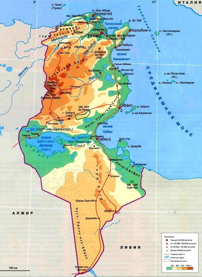 Озеро Эль-Джерид, или Шотт-Эль-Джерид, расположено в центральной части Туниса и, как и многие соленые озера пустыни, периодически высыхает. Масштабы этих сезонных перемен просто поражают воображение. Зимой, в период дождей и относительной прохлады, обширная котловина озера наполняется водой. В это время его площадь достигает внушительных 5000-7000 кв. км и оно является самым большим соленым озером Сахары.