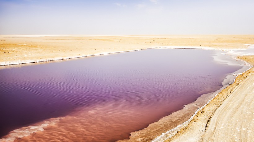 Летом, когда озеро уменьшается до размеров небольшого водоема, вода в нем приобретает розовый оттенок. Это связано с обилием бактерий, живущих в озере. Но образовавшаяся соляная корка создает обманчивое впечатление твердого грунта. На самом деле уходить вглубь озера и тем более передвигаться по нему на автомобиле местные жители не рекомендуют. Известны случаи, когда люди и верблюды проваливались сквозь слой соли в вязкую жидкость.