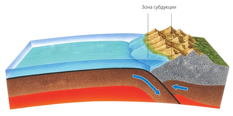 Марианская впадина относится к зонам субдукции. Это протяженные линейные зоны, в которых происходит погружение океанической коры под континентальную, или под островную дугу. При этом на стыке разных типов земной коры образуются трещины, сквозь которые проникают различные минеральные вещества и морская вода. Зоны субдукции и приуроченные к ним глубоководные желоба, наподобие Марианской впадины, чаще всего расположены по периметру океанов и морей по всему земному шару. Марианская впадина находится на стыке Тихоокеанской и Филиппинской литосферных плит. Строго говоря, Марианская впадина — это не определенная точка на карте, а протяженная глубоководная зона на стыке плит. А вот самая глубоководная часть этого желоба носит название Бездна Челленджера.