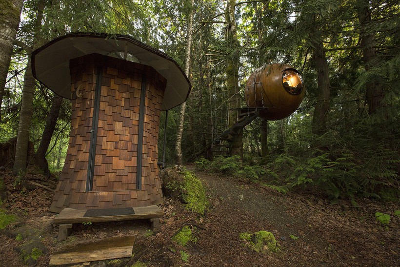 Кажется, на создание этих трех сферических номеров, подвешенных на деревьях посреди леса, автора вдохновляла «Звезда Смерти» из «Звездных войн». У каждого из них, кстати, есть собственное имя — Ив, Эйрин и Мелоди. Во время порывов ветра номера причудливого отеля покачиваются.