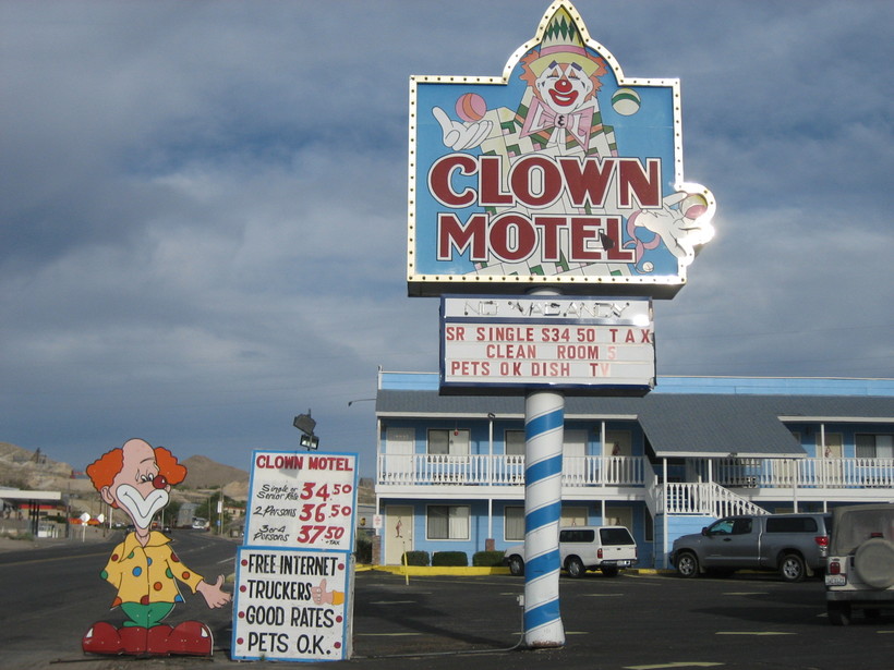 Если вы думаете, что нет ничего более странного, чем отель в виде ануса, то взгляните на эту гостиницу, расположенную рядом с кладбищем и до краев заполненную клоунской атрибутикой. На стенах вестибюля висят куклы клоунов, повсюду стоят клоунские манекены в натуральную величину, картины с клоунами украшают стены над кроватями.
