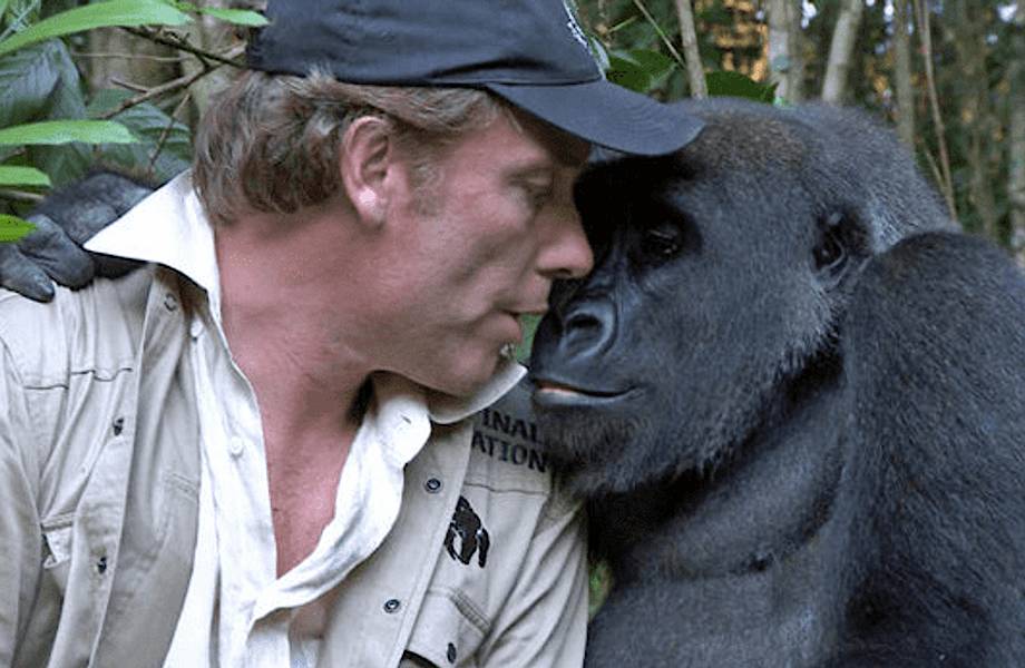 Гориллы — одни из немногих диких животных, которые способны по-настоящему подружиться с человеком. Известный американский приматолог Дайан Фосси провела более 10 лет, общаясь с гориллами. Доверительные отношения между ними стали примером настоящей дружбы между человеком и дикими гориллами, которых до этого многие считали свирепыми и агрессивными животными. А в этом видео показана трогательная встреча ученого, вырастившего гориллу, которая впоследствии была выпущена в дикую природу. Спустя 5 лет после жизни в джунглях, горилла не только откликнулась на голос старого друга, но и после общения не хотела его отпускать.