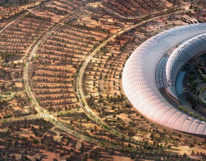 Инженеры позаботились и об экономии воды, а она, как известно, в пустыне на вес золота. Для полива растений и водоснабжения всего комплекса будут использовать воду из глубинных подземных горизонтов. Использованная вода будет направляться на очистку и применяться повторно, а специальная система влагоулавливания позволит избежать потерь драгоценной влаги в результате испарения.