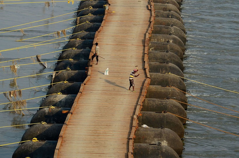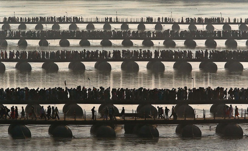 В наступающем году с 15 января по 4 марта в Индии состоится Праздник кувшина, Кумбха Мела. Это крупнейшее в мире религиозное событие, предполагающее массовое паломничество индусов к святыням индуизма. Оно проводится раз в 6 или 12 лет. Только представьте, около 100 миллионов человек соберутся у города Аллахабад, в месте слияния трех священных рек: Ганга, Ямуны и Сарасвати, чтобы совершить массовое омовение. А для того, чтобы такое множество людей смогло беспрепятственно добраться до места назначения, для них строят понтонные мосты. Посмотрим, как именно это делают в Индии.