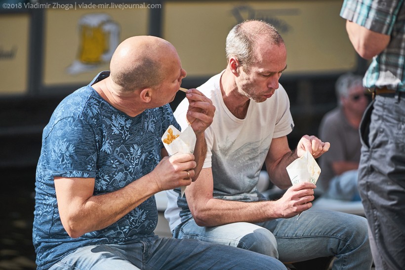 А теперь главный вопрос: «Почему они едят много жареной картошки с "майонезом" и при этом остаются стройными и худыми?» А все потому, что: во-первых, здесь очень качественные и натуральные продукты, во-вторых, сама по себе картошка не приводит к ожирению, если ее не запивать литрами колы, а в-третьих, голландцы очень много ходят пешком и ездят на велосипедах, что отлично сжигает все лишние жиры.