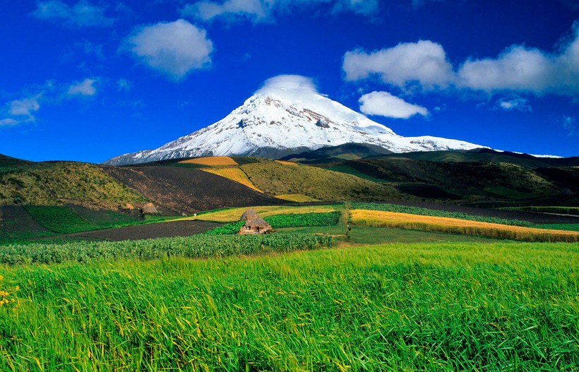А теперь переместимся в эквадорские Анды. Несмотря на близость к экватору, вулкан Чимборасо покрыт вечными льдами. Его высота относительно уровня моря составляет 6 310 метров. Но, согласно данным, полученным совместной франко-эквадорской экспедицией, именно Чимборасо является высочайшей точкой планеты, если измерять от центра Земли, и превосходит по этому показателю знаменитый Эверест. Данные, полученные при помощи навигационной спутниковой системы, показывают, что расстояние от центра планеты до вершины Чимборасо составляет 6 384,4 километра, в то время как аналогичный показатель для Эвереста — всего 6 381 километр.