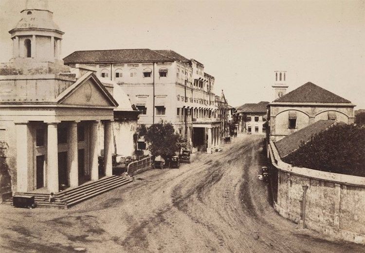 Самая старая фотография Бомбея, который тогда находился под управлением Британии. Сегодняшнюю многолюдную Индию в этих широких улицах с колониальной архитектурой сложно узнать. Мумбаи, 1850 г.