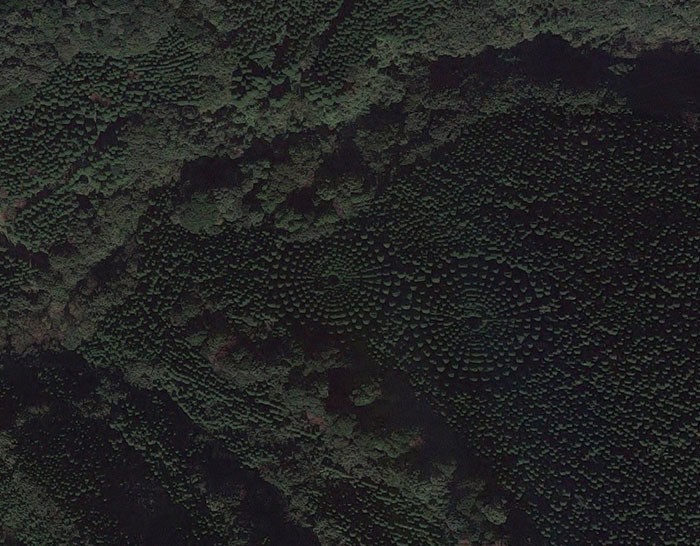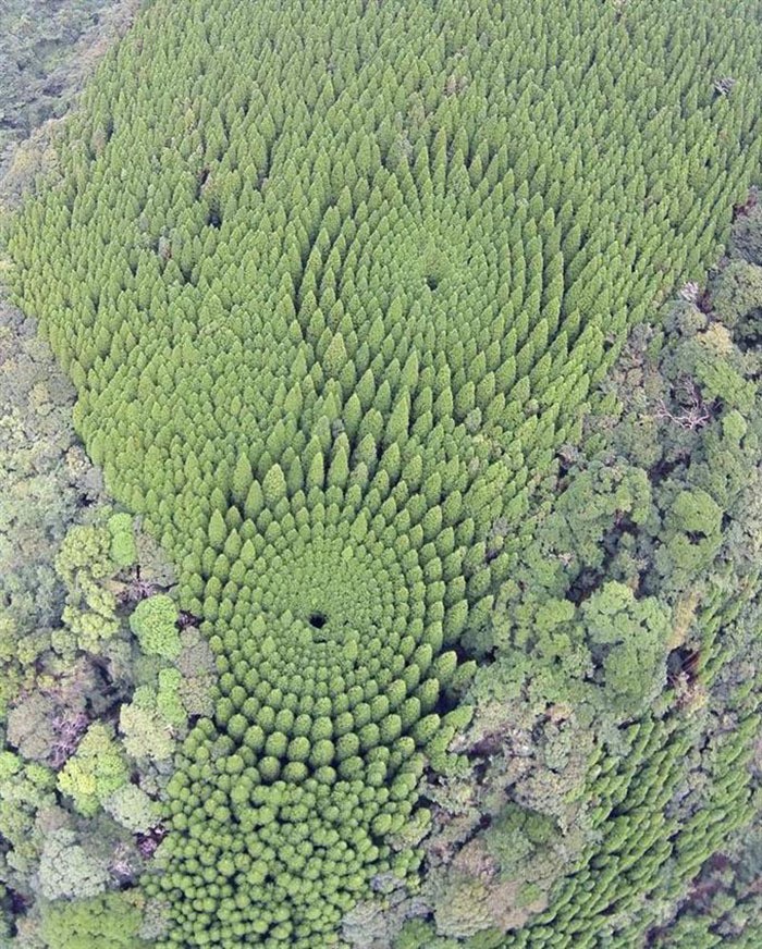 Однако происхождение этих узоров куда более заурядное. Еще в 1973 году ученые начали проект по «экспериментальному лесоводству», целью которого было изучение влияния расстояния между деревьями на их рост. Они посадили круги кедров возле города Никинан в префектуре Миядзаки. Начиная с меньшего внутреннего круга, где деревья были рассажены более плотно, расстояние между саженцами постепенно увеличивали, что привело и к увеличению диаметра. В результате получилось 10 идеальных колец, которые сегодня с воздуха выглядят весьма интригующе для тех, кто не в курсе исследований.