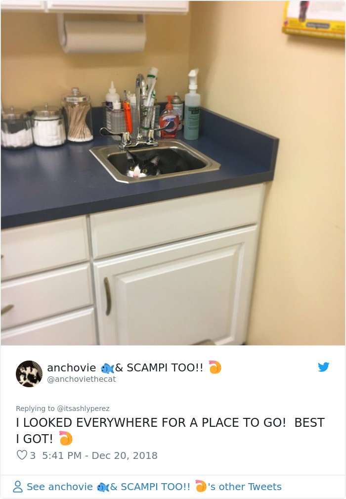 Коты кажутся весьма самоуверенными, самодостаточными и вальяжными созданиями. Но это лишь до того момента, пока они не попадают в приемную ветеринара. Врачебные кабинеты превращают надменных четверолапых задир в растерянных и испуганных существ, которые с ужасом ищут хотя бы какой-нибудь способ спрятаться от приближающейся беды. Впрочем, в ветеринарном кабинете это довольно сложная задача.