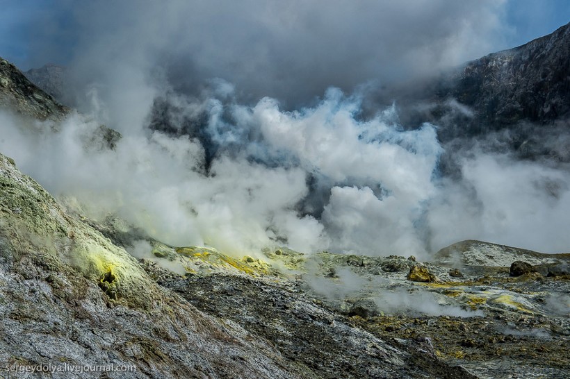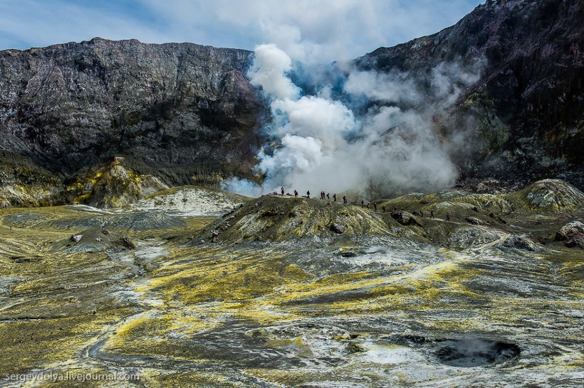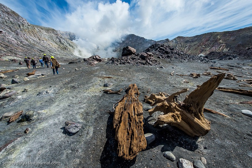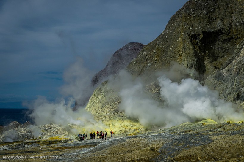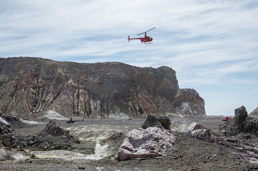 Интересно, что маори (коренной народ Новой Зеландии) трижды продавали вулкан европейским промышленникам. Сейчас остров — это частная собственность, попасть сюда можно только после получения специального разрешения. Экскурсию нельзя назвать дешевой: наш полет обошелся в 5000 $. Тем не менее ценник не отпугивает людей: по словам пилота, он летает на остров дважды, а то и трижды в день. При этом в его компании три вертолета. А в Новой Зеландии несколько компаний, которые занимаются экскурсиями на Уайт. В общем, хорошо иметь домик в деревне вулкан в океане.