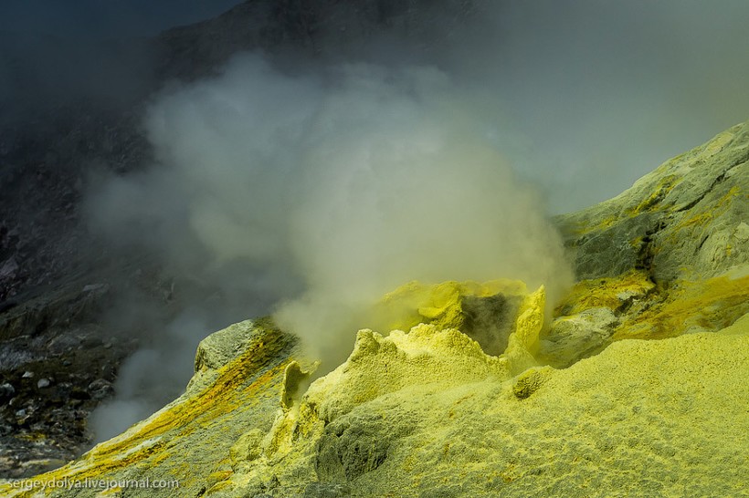 Раньше на острове добывали серу. Производство свернули после трагедии в 1914 году: вулкан проснулся и уничтожил во время извержения большую часть заводских построек.