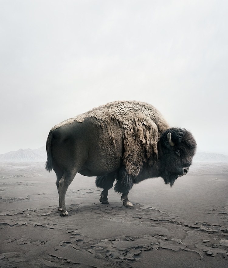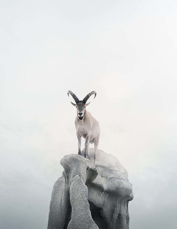 Эти портреты представителей фауны выглядят несколько потусторонними. На них грань между действительным и выдуманным полностью стерта. Цветовая палитра без контрастов и насыщенных цветов, а также мечтательные позы героев проекта еще больше усиливают фантазийную атмосферу. Коллажи выглядят словно отрывки снов.