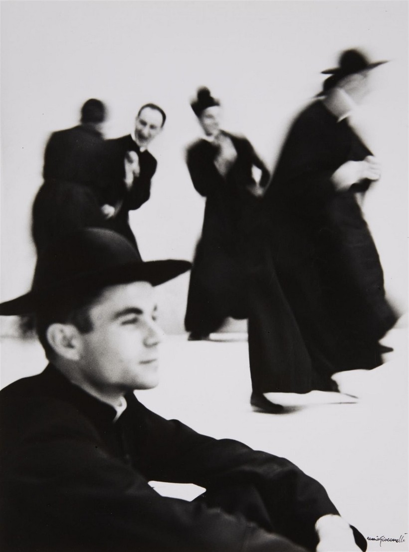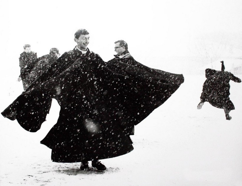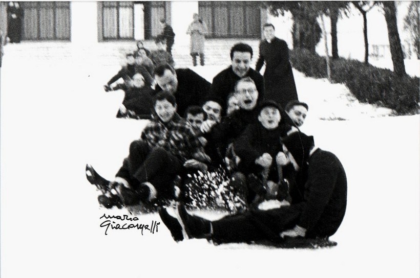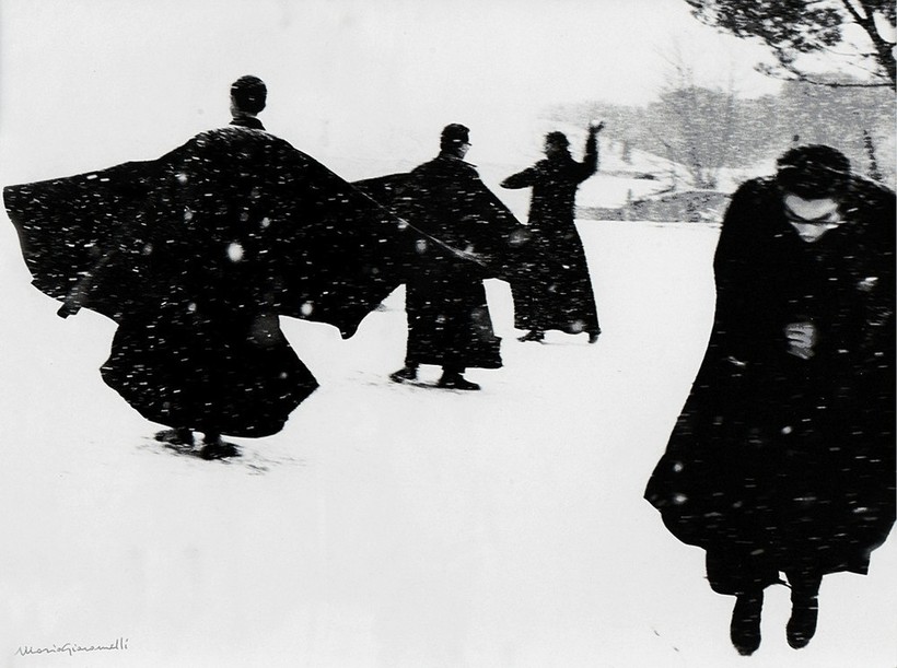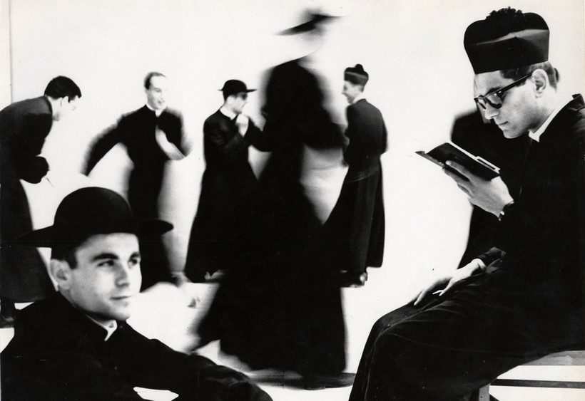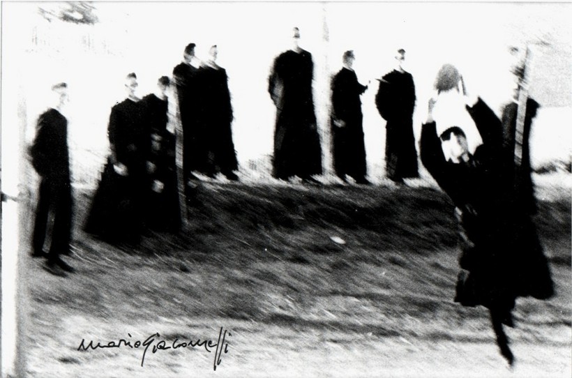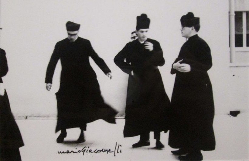 Итак, через несколько лет после начала своей фотокарьеры, на рассвете 60-х годов, Марио Джакомелли отправился в духовную семинарию в Сенигаллии в рамках проекта о представителях католического духовенства своей страны. Здесь он фотографировал юношей, готовившихся стать религиозным оплотом и олицетворением веры, богобоязненности и нравственности Италии. Особенно драматичными и интересными получились снимки, сделанные в редкие минуты отдыха семинаристов. Они так резко отличались от фотографий мирской молодежи, что не могли не тронуть общество. Самыми дерзкими фотографиями в этой серии являются, безусловно, те, где будущие священники курят сигареты. Их, к слову, дал парням сам фотограф. До Джакомелли никто не показывал духовенство в таком свете — простыми людьми, болтающими на улице о своих заботах, бросающими снежки, пляшущими и играющими в подвижные игры.