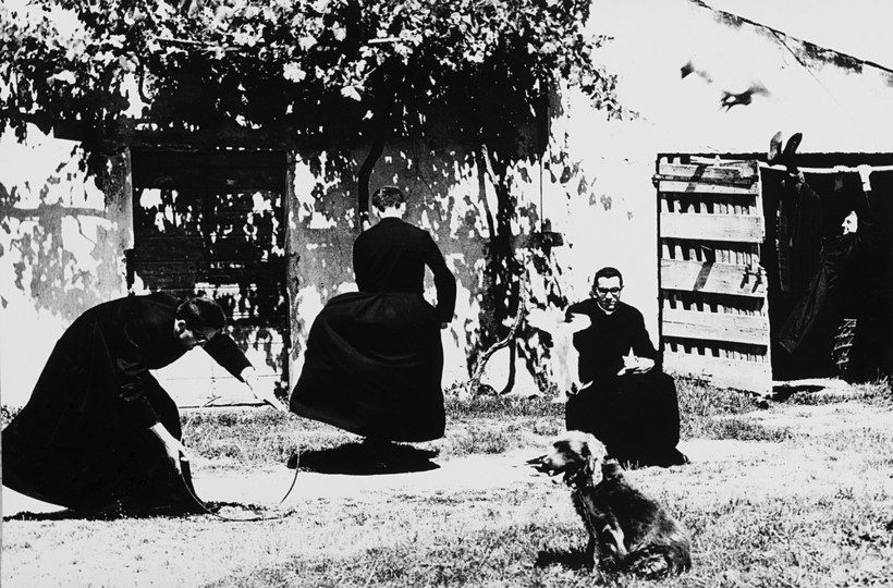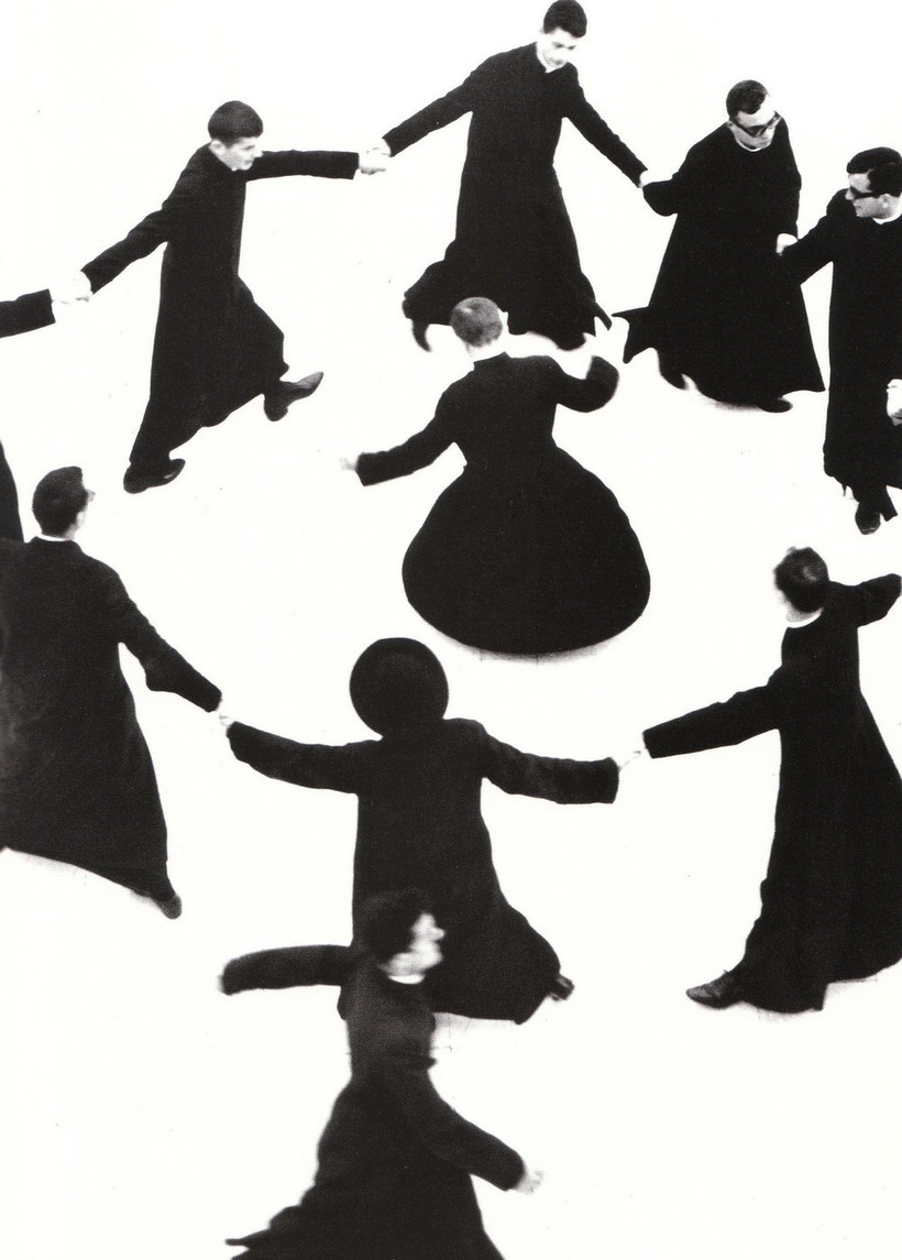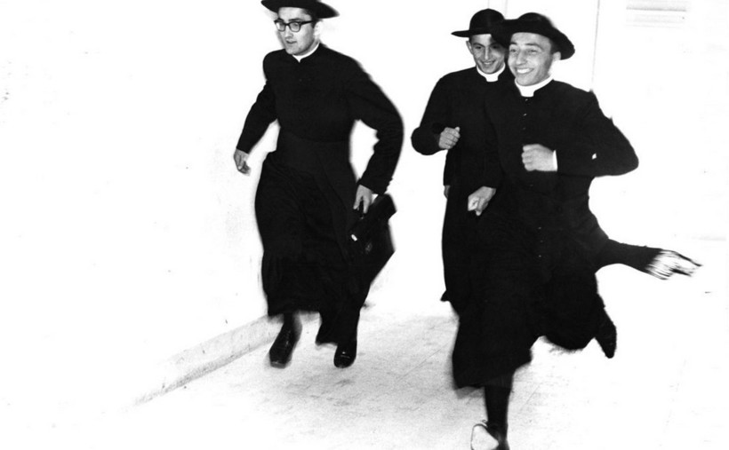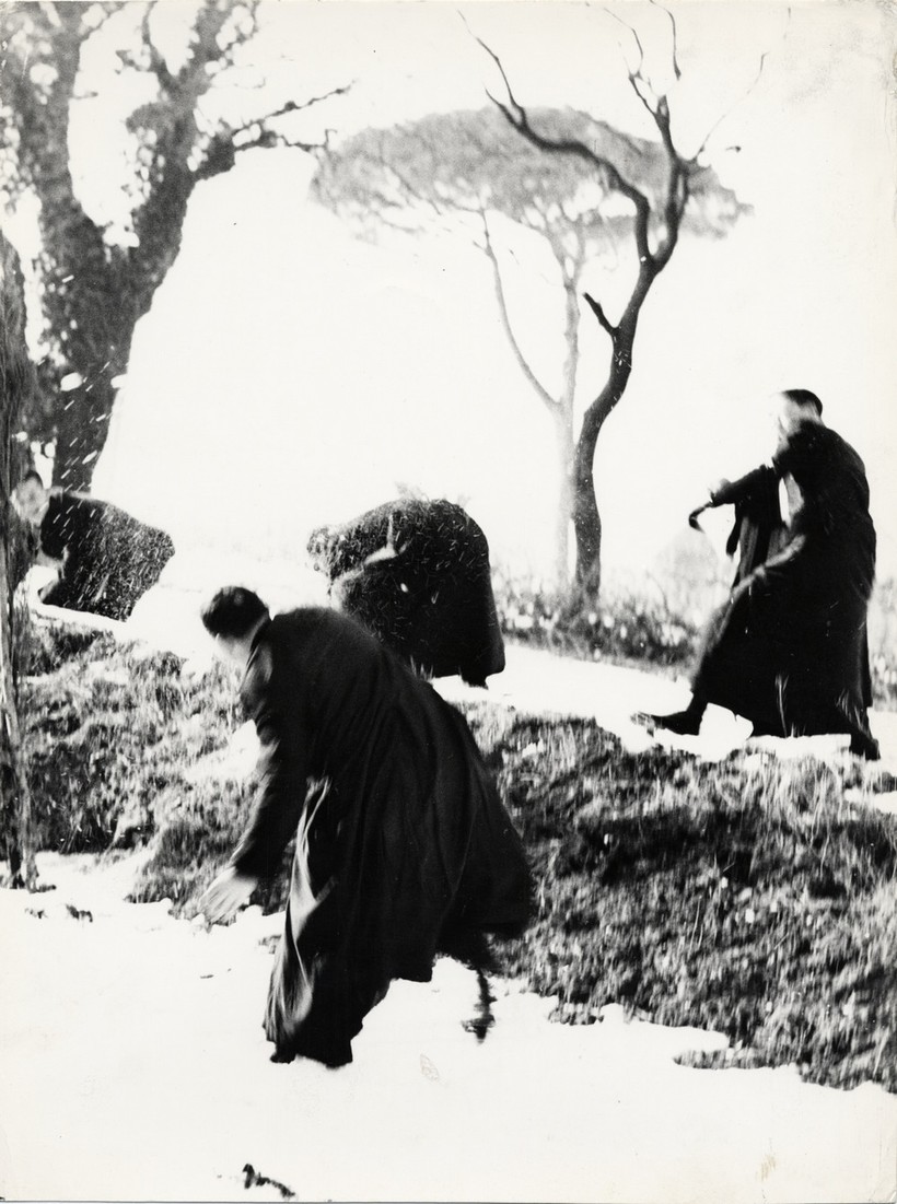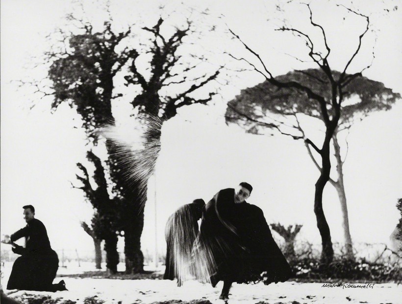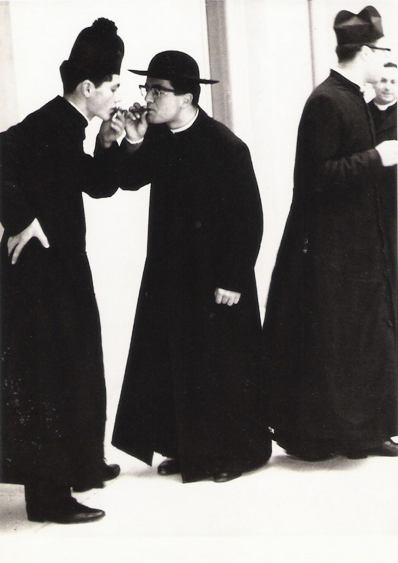 Итак, через несколько лет после начала своей фотокарьеры, на рассвете 60-х годов, Марио Джакомелли отправился в духовную семинарию в Сенигаллии в рамках проекта о представителях католического духовенства своей страны. Здесь он фотографировал юношей, готовившихся стать религиозным оплотом и олицетворением веры, богобоязненности и нравственности Италии. Особенно драматичными и интересными получились снимки, сделанные в редкие минуты отдыха семинаристов. Они так резко отличались от фотографий мирской молодежи, что не могли не тронуть общество. Самыми дерзкими фотографиями в этой серии являются, безусловно, те, где будущие священники курят сигареты. Их, к слову, дал парням сам фотограф. До Джакомелли никто не показывал духовенство в таком свете — простыми людьми, болтающими на улице о своих заботах, бросающими снежки, пляшущими и играющими в подвижные игры.