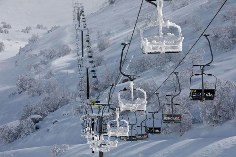 Заснеженная канатная дорога на горе Хермон, которая находится на границе Ливана, Сирии и Израиля