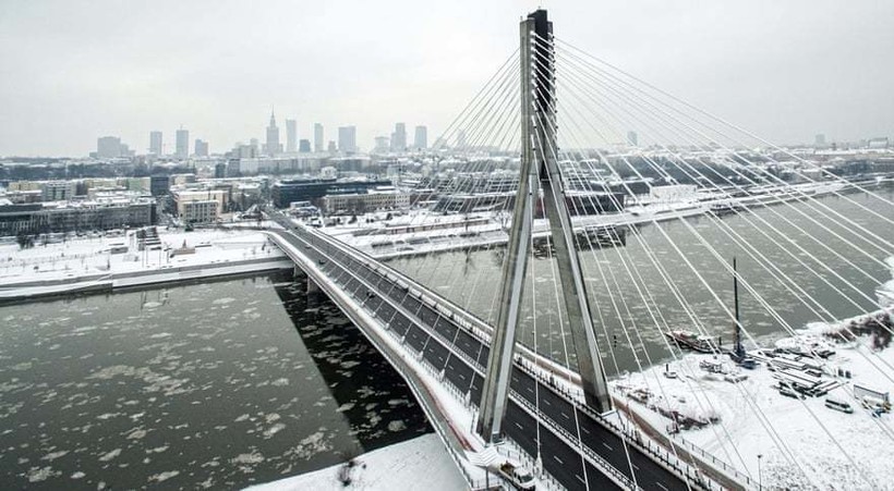 Варшава с высоты птичьего полета, покрытая снегом, Польша