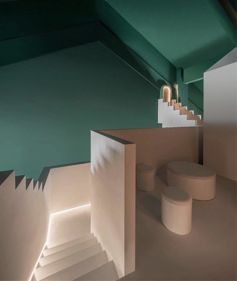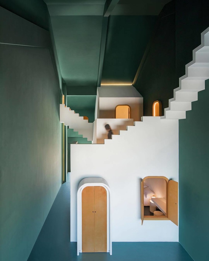 Главная идея проекта — создать иллюзию бесконечности с помощью игры света и тени, а также лестниц и дверей. И дизайнерам удалось этого достичь: отель поражает воображение своим сюрреалистическим дизайном, от которого даже немного кружится голова.
