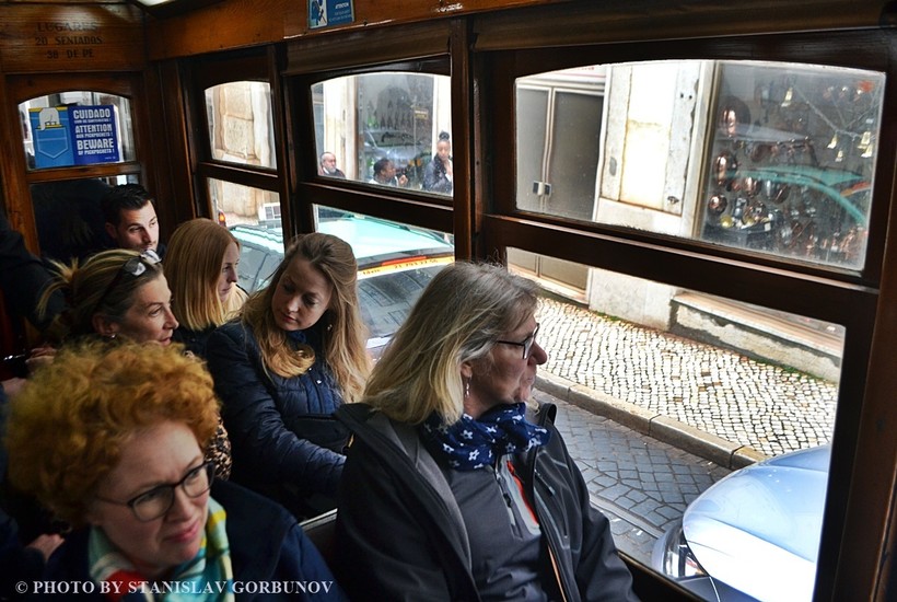 Только получится это лишь у очень неприхотливых, либо чрезвычайно изворотливых туристов. Остальные же, кроме тех, кто занял заранее все сидячие места, наверняка будут плеваться после такой поездки и предпочтут фотографировать эти транспортные средства внешне, а не внутри. Выглядят на ходу со стороны они и правда здорово. Тем более ходят они по самым красивым улицам в историческом центре города и в районе Алфама.