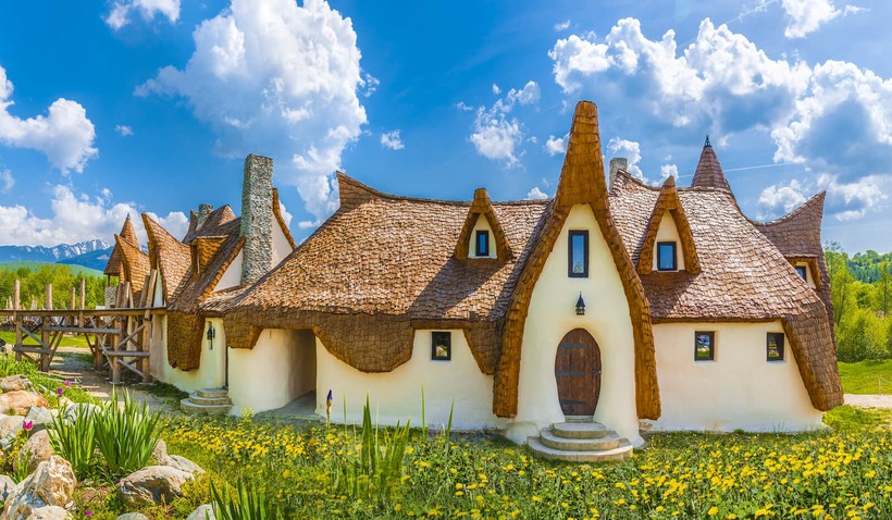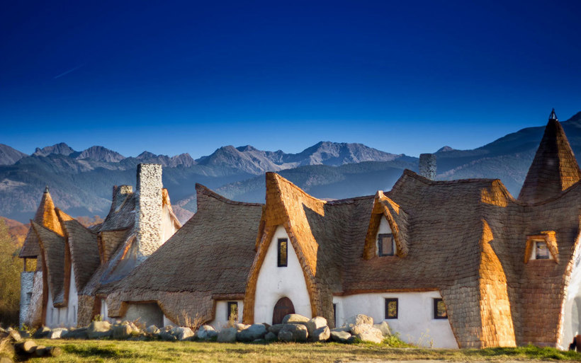Конечно, это не настоящий замок, а экогостиница, построенная исключительно из природных материалов: глины, дерева, песка и соломы. Заведение находится в Долине Фей в деревне Порумбасу-де-Сус, вдали от шума и цивилизации, в окружении гор, лесов и свежего воздуха. Завораживающий внешний вид отеля со сказочными скатными крышами и массивными деревянными дверьми замечательно вписывается в окружающие пейзажи, дополняя их еще большей красотой и гармоничностью.