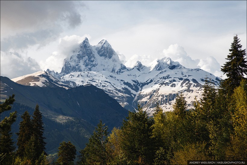 Ушба — одна из самых высоких гор в Грузии, ее высота составляет 4700 метров над уровнем моря. Форма ее вершины — два остроконечных зубца — делают ее одной из самых сложных вершин для восхождения не только в Грузии, но и в мире. Невероятно красивая гора!