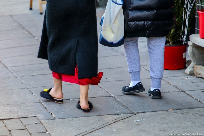 На улице было реально холодно и к тому же дул ледяной ветер, но девушка шла по улице в тапках.